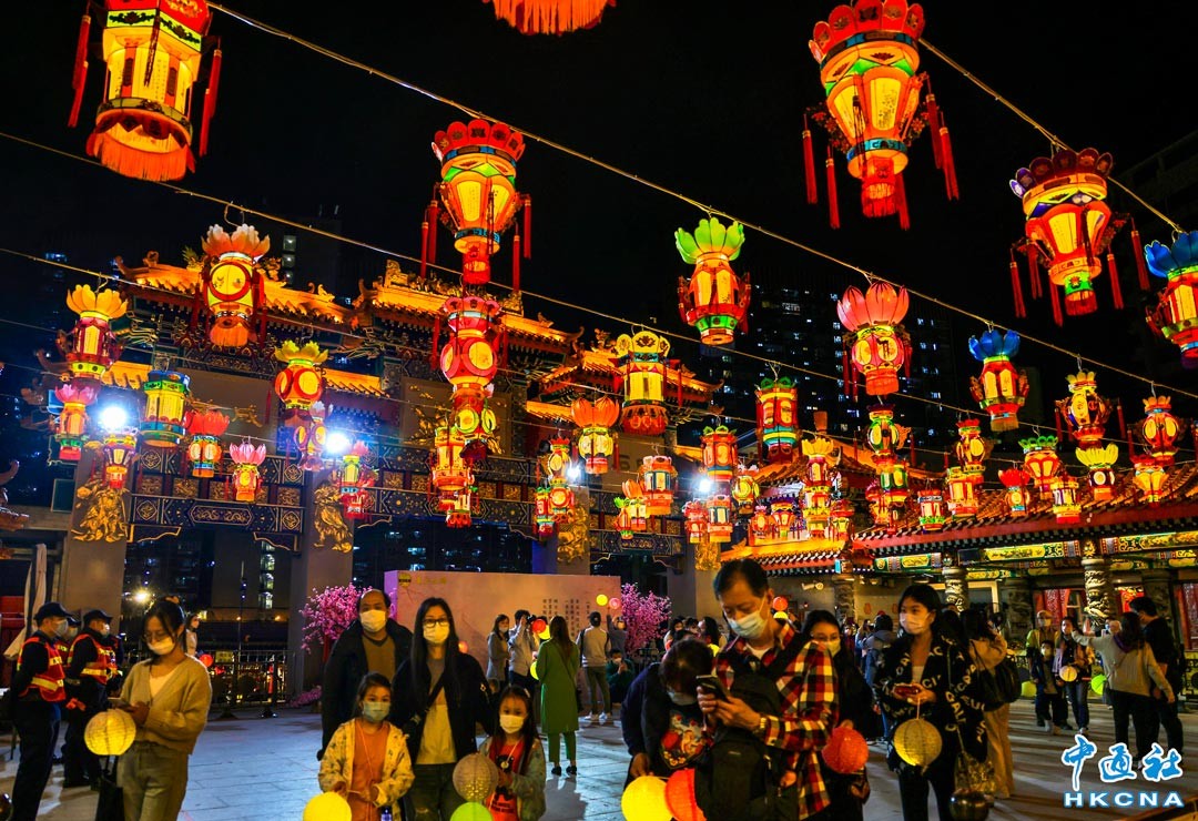 2月5日為正月十五元宵節,香港黃大仙祠延長開放至晚上十時,為善信預備了豐富節目。當日,黃大仙祠不少善信參拜月老,祈求天賜良緣,亦有市民穿著漢服遊園,仿如置身古代元宵燈會。(香港中通社記者 曹文毓攝)