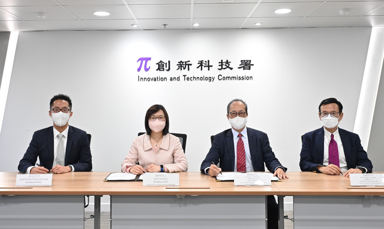 創新科技署署長潘婷婷(右)和綠楊樓有限公司首席營運官(香港及澳門)蕭德威(左)簽署資助協議。