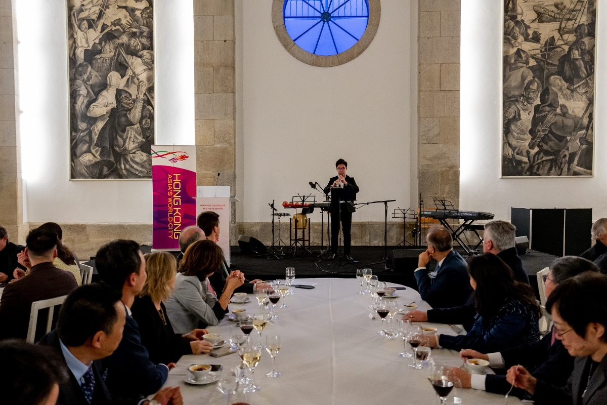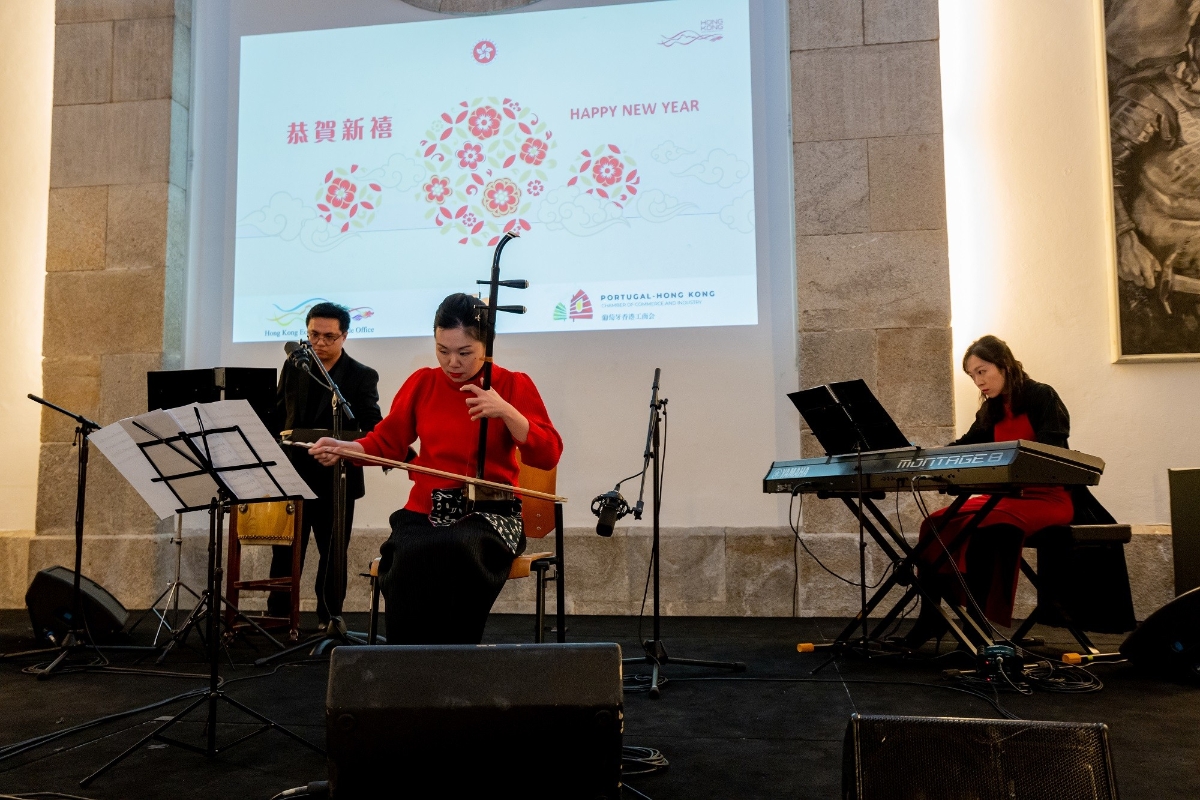香港駐布魯塞爾經濟貿易辦事處9日(波圖時間)在波圖舉行的新春酒會中,嘉賓欣賞雙簧管獨奏。