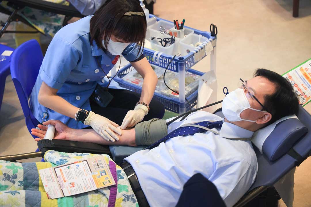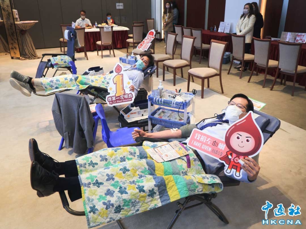 立法會議員正在捐血(香港中通社記者 許其皓攝)