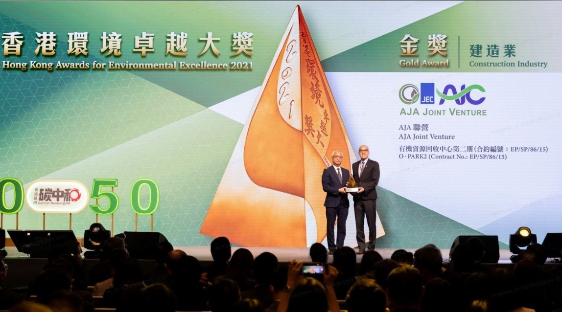 香港新聞網2月21日電 中國建築工程(香港)有限公司(中建香港)宣佈由公司承建的有機資源回收中心第二期(O⬝PARK2)在2021香港環境卓越大獎中榮獲“香港環境卓越大獎”金獎,並由香港特別行政區環境及生態局局長謝展寰在2月20日頒發獎座。 同樣值得分享的是中建香港另外兩個參與承建的項目在同一大獎中均獲得優異獎嘉許,包括將軍澳海水化淡廠項目及搬遷沙田污水處理廠往岩洞項目,再次肯定公司推動綠色建築和低碳施工,響應推動創新科技及可持續發展的建築潮流。