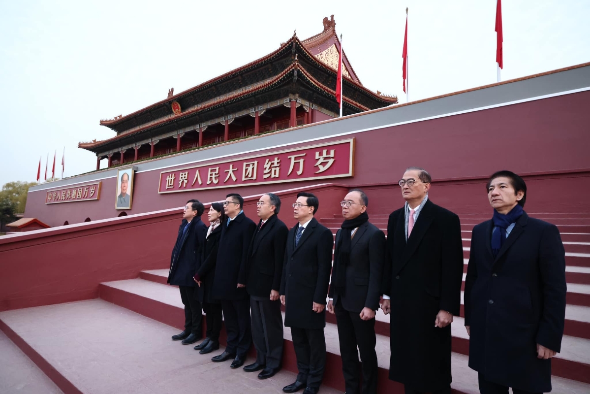 1、正在北京的香港特區行政長官李家超17日和團隊一同到天安門廣場觀看升旗禮。他說,看著國旗在風中飄揚,莊嚴而神聖,令他想起國家經過長期奮鬥,在各方面都取得驕人成就,綜合國力日益強大。香港特區政府會更積極和主動融入國家發展大局,發揮好“一國兩制”下香港背靠祖國、聯通世界的獨特優勢,為國家高質量發展作出貢獻。同時,也會引領香港青年更好地認識國家,培養他們成為愛國愛港的社會棟樑,為國家的富強昌盛作出貢獻。