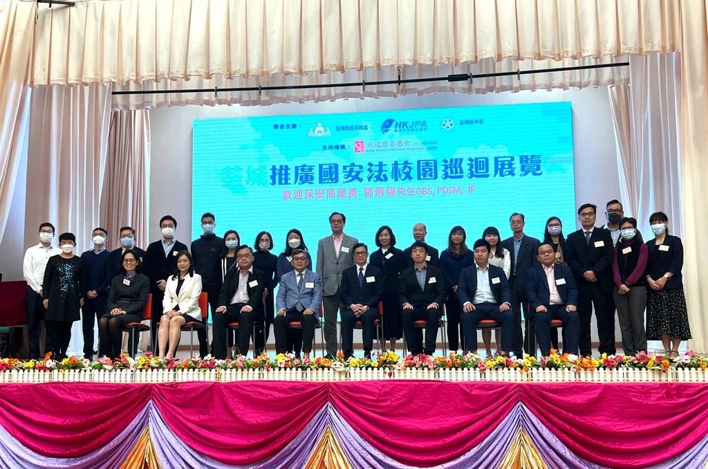 香港新聞網4月3日電 國家安全是社會發展的基礎,社會穩定是國家強盛的前提,兩者關係密不可分。適逢4月15日是全民國家安全教育日,香港太平紳士協會、天龍慈善基金聯合主辦“荃城推廣國安法 校園巡迴展覽”,到訪廖寶珊紀念書院進行國安教育宣傳和推廣。特區政府保安局鄧炳強局長、香港太平紳士協會會長嚴玉麟博士、天龍慈善基金會主席陳義光、民建聯立法會議員郭玲麗、陳永光擔任主禮嘉賓。