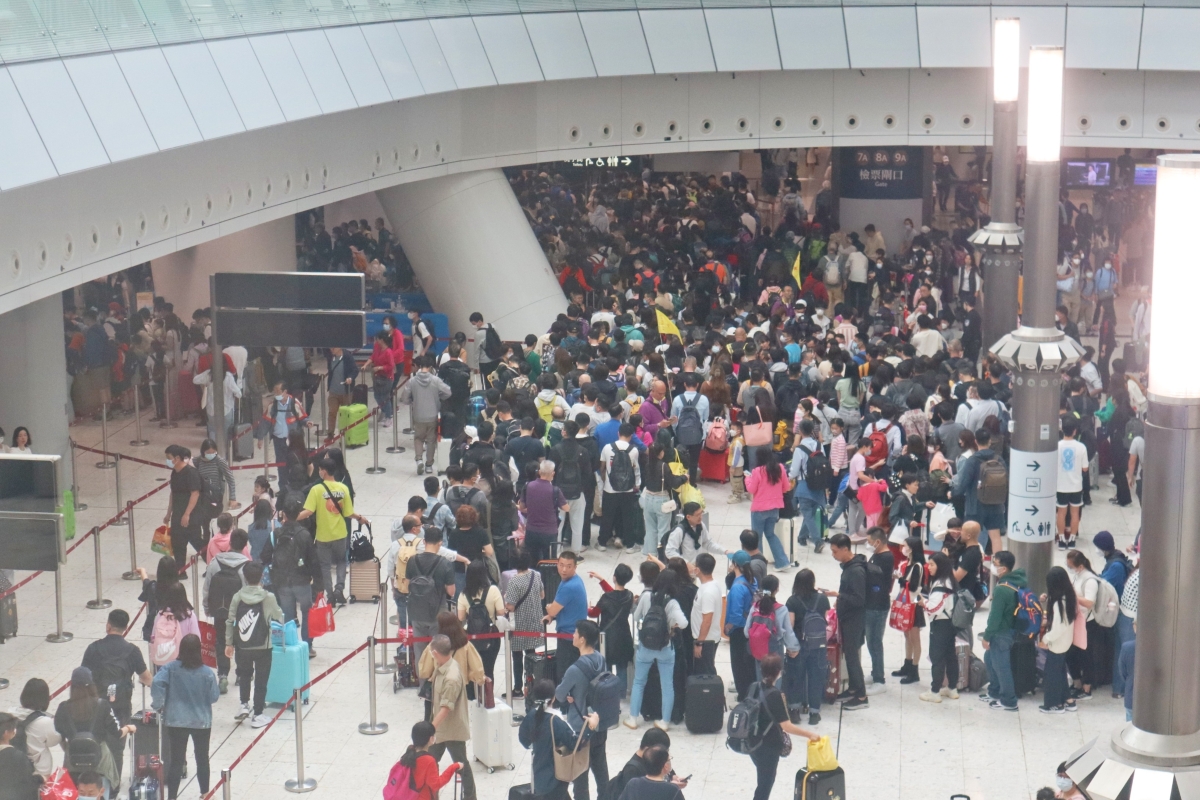 出境大堂人頭湧湧