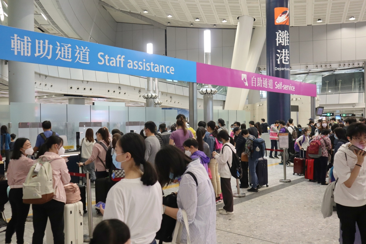西九龍高鐵站有大批出外旅客