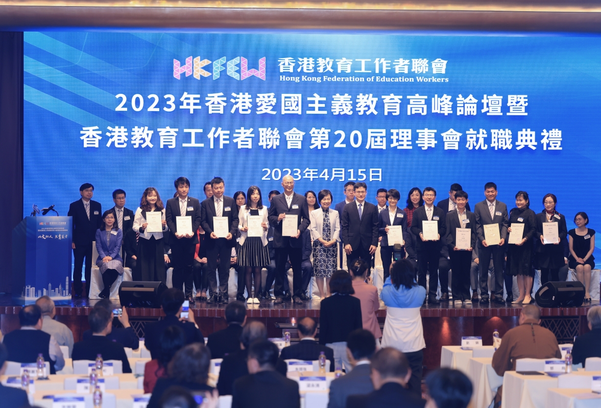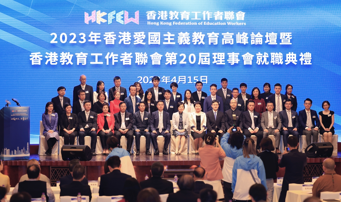 香港新聞網4月15日電(記者 曹文毓)4月15日,爲在教育界弘揚以愛國愛港爲核心的主流價值觀,提升廣大教育工作者和青年學生的國家意識和愛國精神,2023年香港愛國主義教育高峰論壇暨香港教育工作者聯會第20屆理事會就職典禮在香港君悅酒店舉行,香港各界嘉賓、辦學團體及學校代表,以及教聯會會員等逾300名來賓出席,場面盛大。