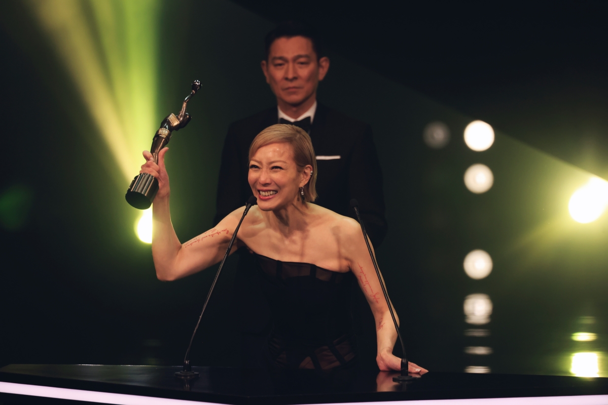 香港新聞網4月16日電(記者曹文毓)第41屆香港電影金像奬頒獎禮16日晚在香港文化中心隆重舉行。影星劉青雲憑《神探大戰》奪最佳男主角;鄭秀文憑《流水落花》奪最佳女主角。 劉青雲從影40年以來第三度於金像獎封帝。他說,只要有夢想、肯努力,夢想總有一天會實現。 鄭秀文憑《流水落花》奪最佳女主角。鄭秀文曾先後7次獲提名影后,此次終於封後。她說,最佳女主角似是遙不可及,但又只是一步之遙,她一直在思考如何進步,提升演技。她特別感謝去世的父親,曾不斷鼓勵支持她。
