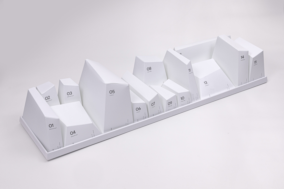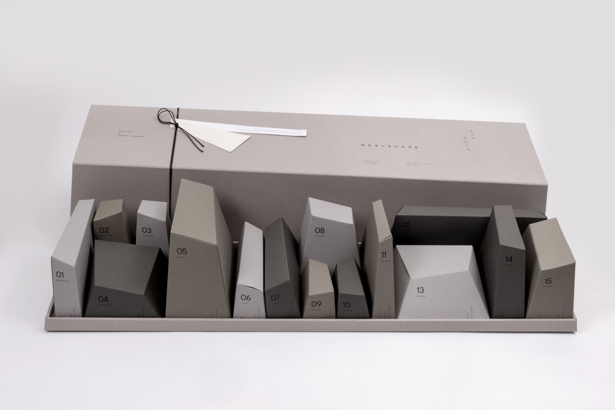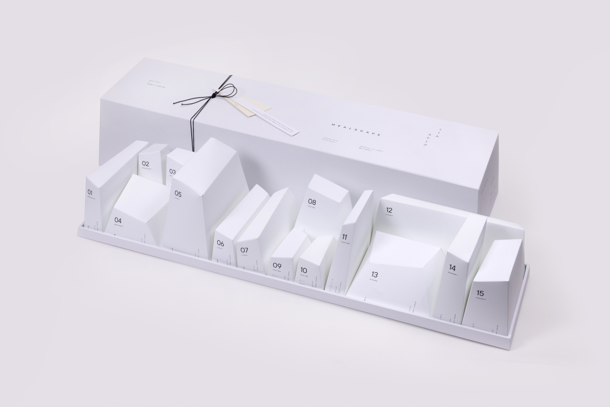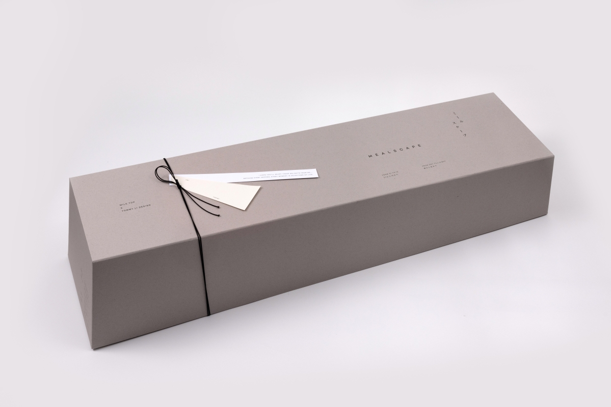 Tommy Li 禮盒採用Scape(景觀)的視覺效果實現“MEALSCAPE”的概念,外型以日系簡約理念為基礎,於一米長的禮盒中,排列不同形狀的盒子,內裏是由MILK TOP呈獻之優質食品,由早餐、午餐、下午 茶、晚餐、甜品排序,組成延綿不絕的“山脈”與無盡的“天際線”。而每款食品均附帶獨一無二的心意字條,與食物構成“上下聯”關係,彼此呼應,讓收禮人滿足視覺與味蕾外,亦延伸至心靈上的感悟!