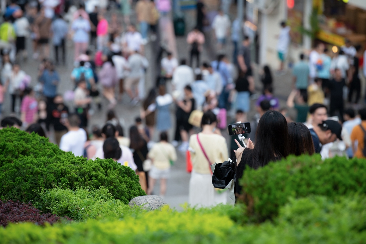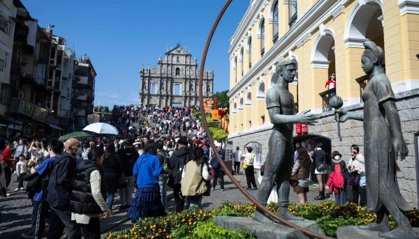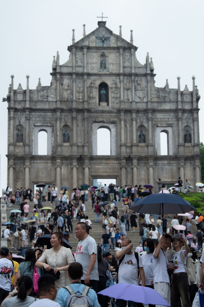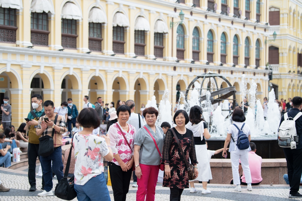香港新聞網4月29日澳門電    4月29日,大批遊客在澳門新馬路遊玩。內地“五一”黃金周首日,澳門各景點及中區游客如潮。澳門治安警察局公佈數據顯示,截至下午五時,共約三十二萬六千人次經本澳各口岸出入境,其中入境旅客約八萬六千人次,出境旅客約三萬六千人次。
