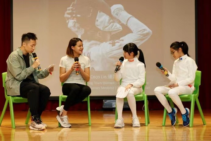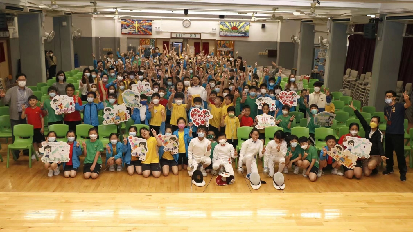 劍擊運動員連翊希到訪屯門路德會呂祥光小學,跟全校學生分享運動員經歷, 同學認清自己的目標,在場與同學打成一片。