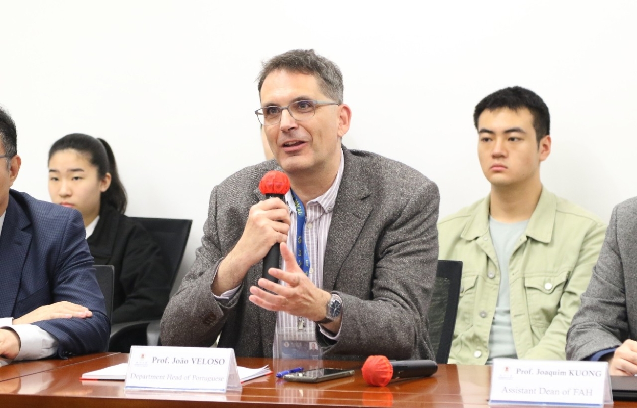 圖片來源:澳門新聞局,圖示:澳大人文學院舉辦“鏡海人文論壇” 論壇上,澳大人文學院助理院長鄺耀基介紹了澳門和葡萄牙的緊密聯繫和深厚友誼;葡文系主任João Veloso簡述了Costa教授在語言學界及教育學界的傑出貢獻。