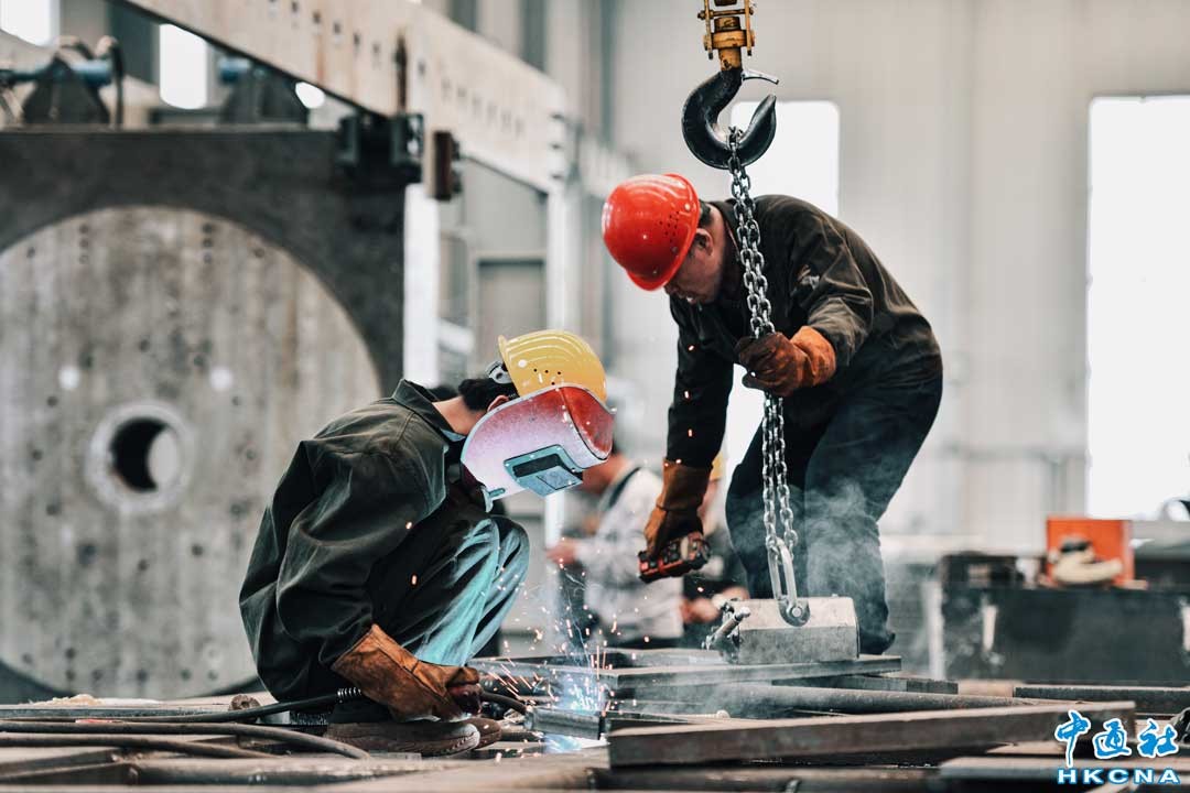 5月11日,山西省太原市,太原華冶設備研究所(有限公司)工人在燒焊作業。當日,中國國家統計局公佈,4月份,受國際大宗商品價格波動、國內外市場需求總體偏弱及上年同期對比基數較高等因素影響,中國工業生產者出廠價格指數(PPI)同比下降3.6%,環比下降0.5%。香港中通社圖片