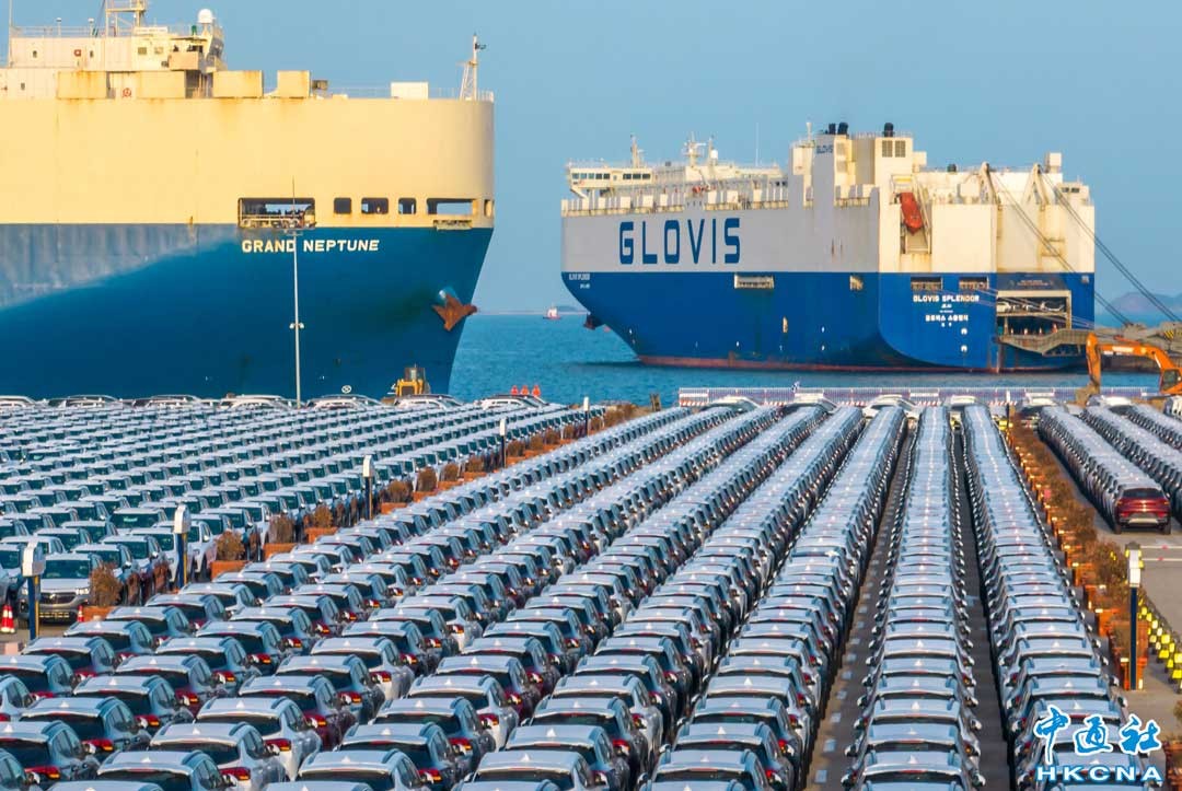 據媒體11日報道,中國今年第一季度汽車出口量達到約107萬台,超過同期日本出口量,有望成為世界第一大汽車出口國。資料圖為2023年3月17日拍攝的煙台港外貿商品車“出海”場景。 香港中通社圖片