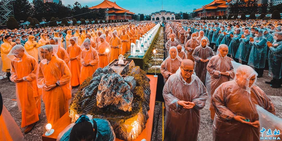 5月14日,為慶祝“佛誕節、母親節”慈濟基金會在台北舉辦“2023年佛誕浴佛孝親感恩祈福會”,現場在上百名法師的引領下祈求未來無災、平安順利。香港中通社圖片