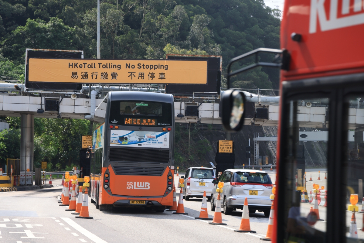 香港城門隧道實施“易通行”首日,車輛經過隧道