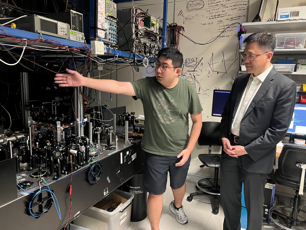 圖片來源:香港新聞處。孫東(右)在新加坡參觀新加坡國立大學,並向校長陳永財教授(左)送贈香港創新科技發展藍圖。 孫東隨後到訪當地其中一所國家卓越研究中心—量子科技研究中心,並參觀其實驗室,了解當地的量子生態圈,以及中心在量子科技方面的研究和應用。 他亦到訪另一所國家卓越研究中心—力學生物學研究所,參觀其力學生物工程實驗室,並聽取研究所有關科研主題及專業、先進科研合作設施,以及應用於預防、診斷和治療人類疾病的力學生物學研究成果的轉化工作。