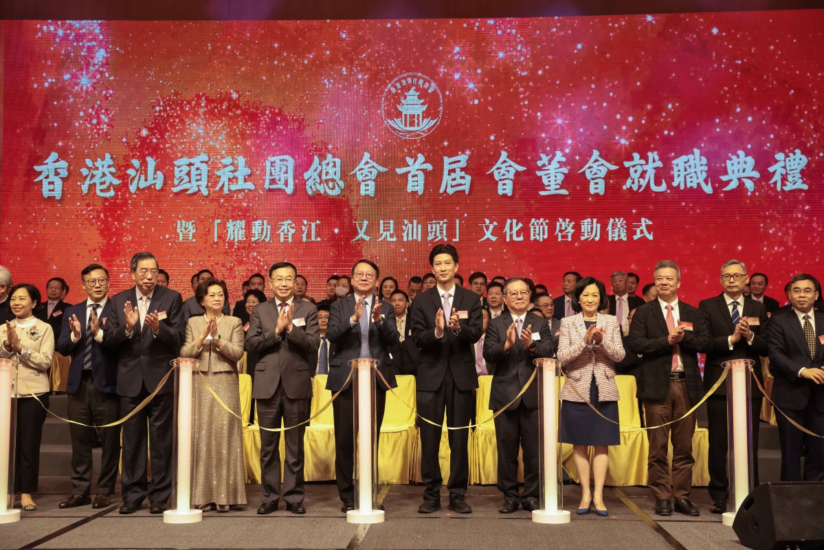 香港新聞網5月24日電 香港汕頭社團總會24日舉行首屆會董會就職典禮。香港特區行政長官視頻致辭,香港政務司司長陳國基、香港中聯辦副主任何靖、汕頭市委書記溫湛濱,以及香港立法會主席梁君彥、行政會議非官守議員召集人葉劉淑儀等,作為主禮嘉賓出席活動。