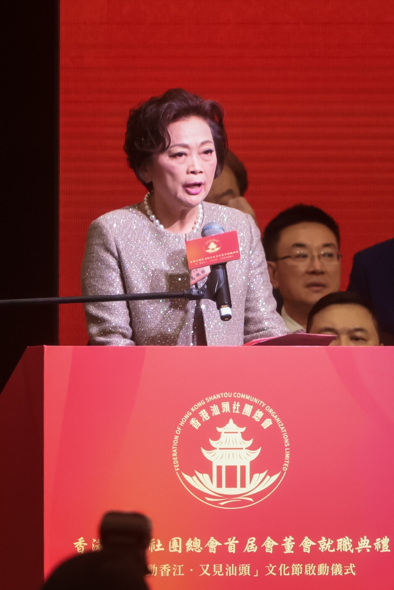 香港中通社圖片 高佩璇致辭表示,汕頭特區是著名的僑鄉,在港鄉親數十萬,為促進香港和內地交流貢獻良多。香港汕頭社團總會在中聯辦、省市領導及各部門指導,在鄉賢關懷參與下成立。自成立以來積極支持特區政府依法施政,組織社區關愛隊,疫情時全心抗疫。汕總將以僑為橋,發揮紐帶作用,講好中國故事,做好新時代僑的文章。汕總將與大家攜手,為祖國富強、為香港穩定、為家鄉發展貢獻力量。