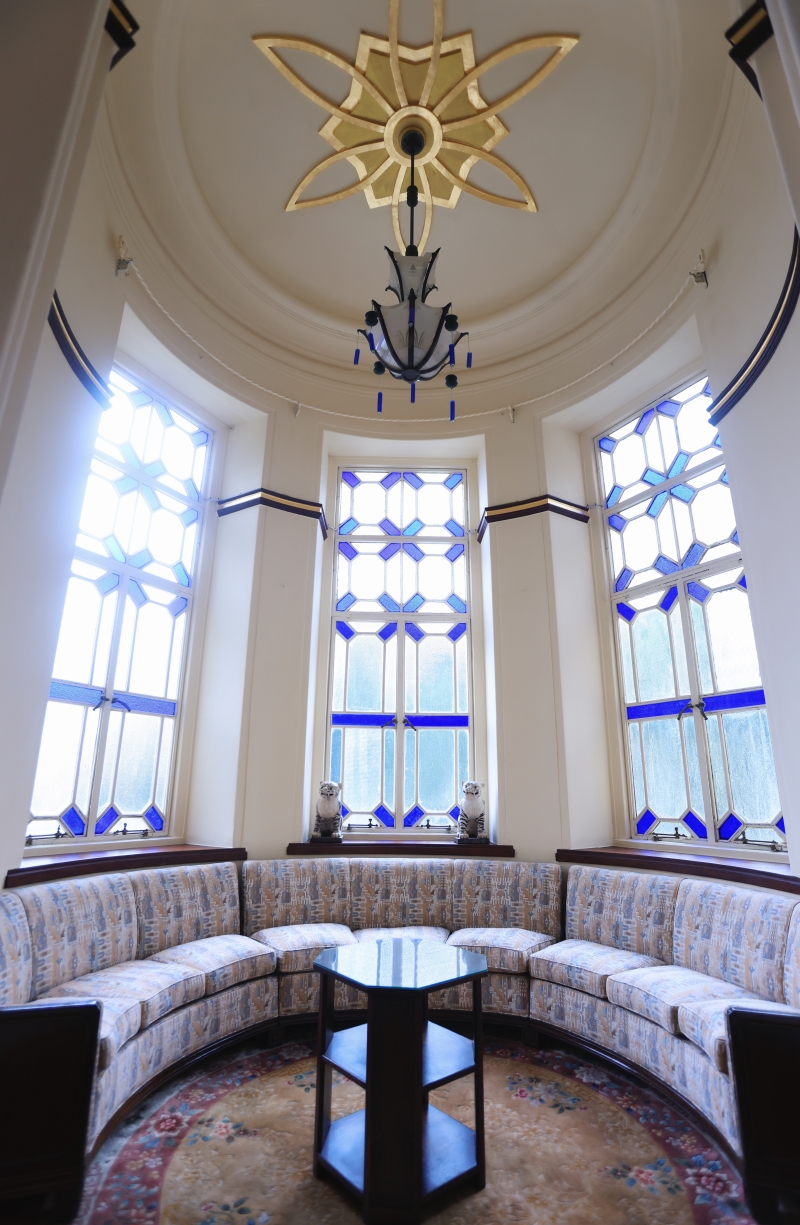 香港新聞網6月5日電(記者 曹文毓)6月5日,香港虎豹別墅室內。當天,古物古蹟辦事處宣布,虎豹別墅6月9日將以導賞形式重新開放予市民參觀。導賞團逢星期五至日及公眾假期以粵語進行,每日4節,每節名額24人。導賞員會帶領市民參觀別墅的私人花園及大部分室內空間,並介紹其歷史、建築特色和文物價值。虎豹別墅位於香港大坑道15A號,為昔日華僑商人胡文虎的大宅,以胡文虎、胡文豹兩兄弟的名字命名。於2009年獲評為一級歷史建築。