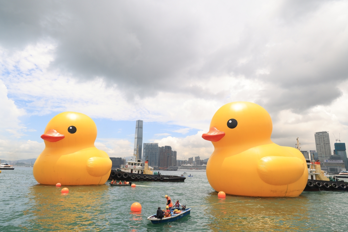 巨型“大黃鴨”攜夥伴重游香港維港分享到: