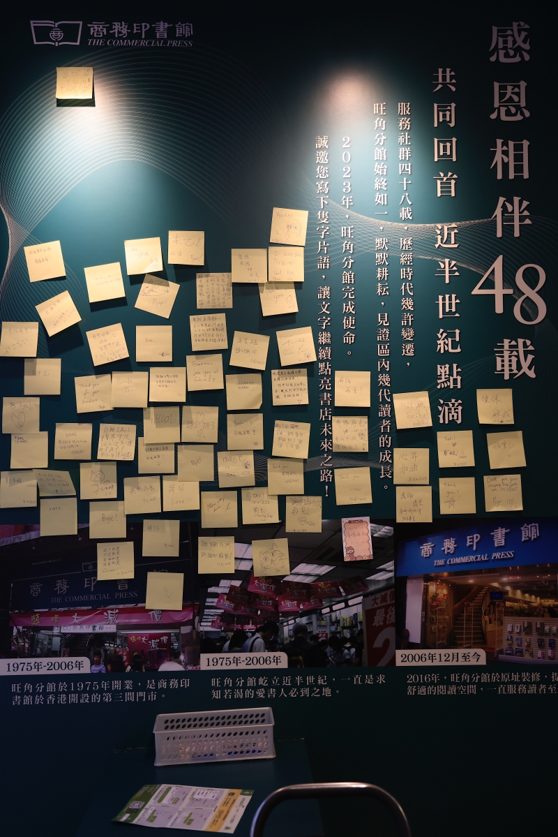 不少市民在書店門口貼上親手寫的便簽紙,如“有緣再會”、“這間書店我讀中學時已經在這裏,陪伴我出社會工作,吸收到不同的知識,多謝商務”等
