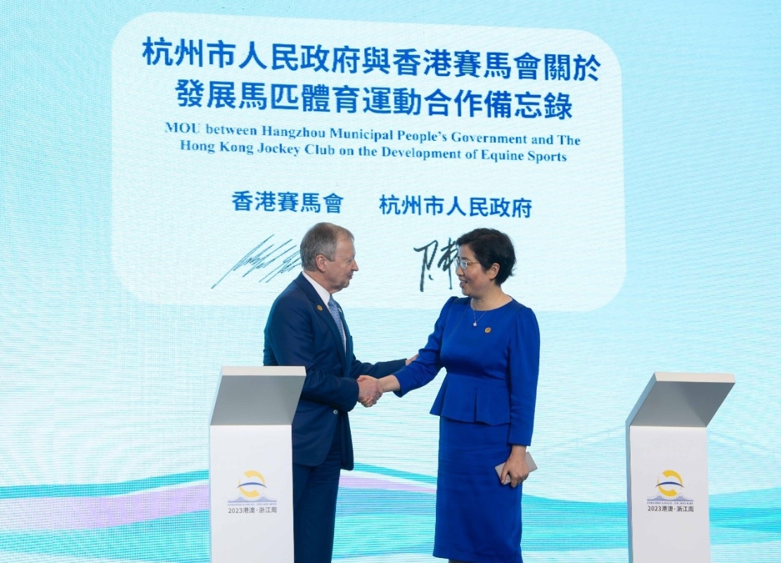 農業農村部與國家體育總局於2020年9月發布《全國馬產業發展規劃(2020-2025)》,重點勾畫大力發展和推廣馬匹運動的藍圖,并把長三角地區納入發展區域之一,利用區域優勢發掘馬術運動消費潛能及提升其經濟效益。杭州作為長三角中心城市之一,正以舉辦亞運會為契機,全力培育體育產業,致力建成全國重要的體育產業示範基地和體育消費示範城市。 馬會長期為內地的馬匹運動及相關產業發展作出貢獻,輔助國家推動落實《全國馬產業發展規劃》的目標。早在本年5月,馬會與亞組委簽署合作備忘錄,為杭州亞運會馬術項目提供技術支援,奠定了杭州市政府與馬會在探索馬匹運動合作的堅實基礎和優良平台,藉此共同探討提升及推廣區內馬匹體育運動。 本次馬會與杭州市政府簽署的合作備忘錄,借馬會在馬匹產業發展的世界級專業水平與豐富經驗,結合杭州市的市場潛力,以及舉辦亞運會等國際賽事的影響力,進一步深化杭港合作。雙方將就馬匹體育運動合作等方面建立聯絡機制,以攜手推動多項工作,包括: • 探討現有場地運營模式:探討桐廬馬術中心在亞運會賽後的利用方案及發掘其他現有場地的潛在用途,以形成可持續運營模式。 • 推動馬匹體育運動發展:在舉辦國家及地區性馬匹運動賽事、騎乘教育、文化旅遊等方面積極探索合作。 • 加強人才培養:探索利用桐廬馬術中心等具備國際水准的場地和設施,對馬匹體育運動、獸醫和釘甲服務、馬房管理等專業領域的從業人員提供培訓和發展計劃。 • 促進運動普及:開展社區活動、教育計劃和媒體宣傳,提高市民對馬匹體育運動認知度和參與度。
