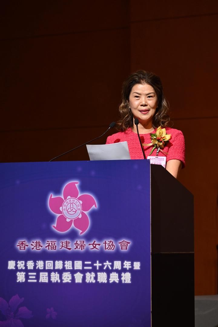 香港福建婦女協會慶祝香港回歸祖國26周年暨第三屆執委會就職禮。 中央統戰部副部長、中華海外聯誼會副會長林銳 ,中央政府駐香港特別行政區聯絡辦公室副主任何靖 ,福建省委常委、常務副省長郭寧寧, 中央駐港維護國家安全公署副署長李江舟, 中華全國歸國華僑聯合會副秘書長、經濟科技部部長趙紅英 ,全國政協常委、香港福建社團聯會榮譽主席吳良好, 全國政協常委、中國和平統一促進會香港總會會長姚志勝,全國政協常委、香港各界婦女聯合協進會主席何超瓊、 香港特別行政區保安局局長鄧炳強等應邀擔任主禮嘉賓。