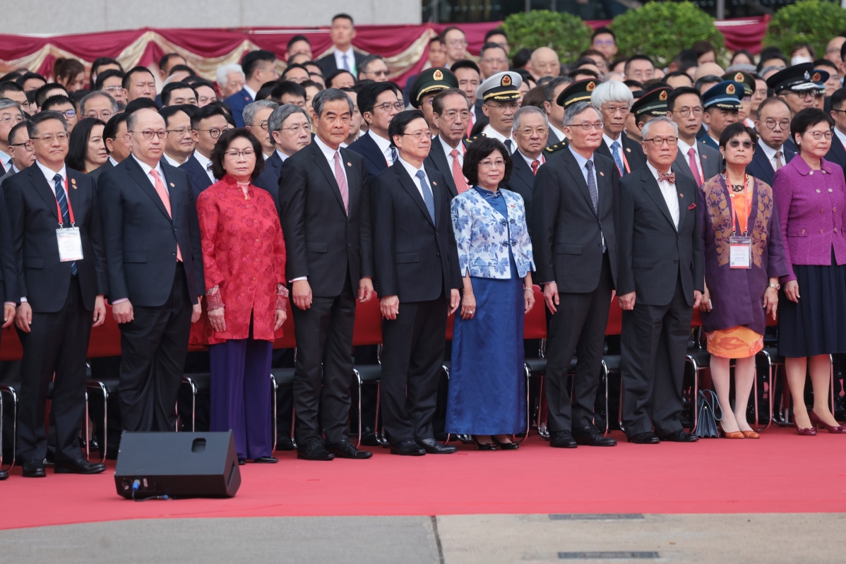 全國政協副主席梁振英、香港特區行政長官李家超、香港中聯辦主任鄭雁雄等出席升旗儀式