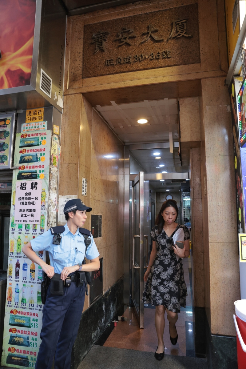 香港新聞網7月5日電(記者謝光磊)7月5日,香港旺角寶安大廈大量石屎剝落,石屎最大有拳頭般大,幸無人受傷,這是寶安大廈4日內第二次石屎剝落。當天下午時,搭棚車到達旺角道,在寶安大廈搭棚緊急清拆並修葺冧石屎範圍。大批工人在寶安大廈進行搭棚工作。警方封鎖現場和旺角道部分行車道。
