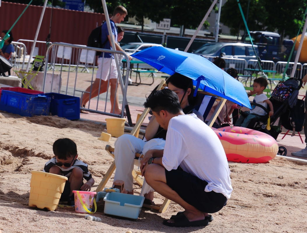 香港新聞網7月8日電(記者 曹文毓)6月至7月,“SummerFest中環夏誌”在香港中環海濱活動空間回歸,今年以“玩曬海濱”為主題,逾3萬平方米的戶外場地供大眾免費入場享受海濱空間,更提供一系列活動,讓大、小朋友可以歡度暑假。常駐節目及設施包括“太陽沙灘”、大型太陽蛋彈跳裝置“蛋蛋彈彈”,以及舉辦大型文創市集、街舞等活動,並增設12米的巨型大藍鯨、太陽花田等打卡位,吸引不少兒童和成人來此休閒。