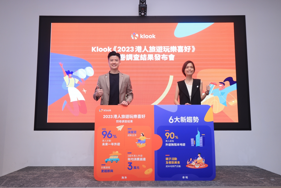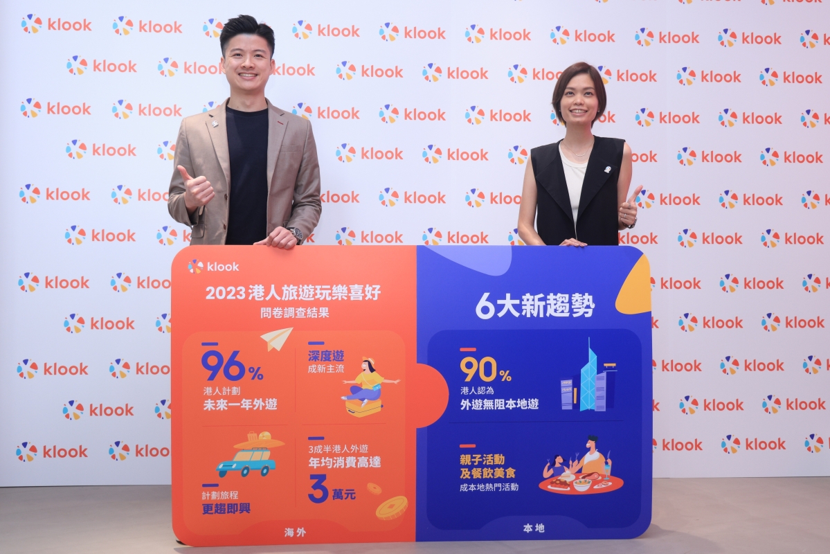 7月10日,Klook發布《2023港人旅遊玩樂喜好》調查問卷結果。Klook於今年5月尾至6月初,透過網上問卷形式,訪問3412位年齡介乎18至59歲以上香港人。調查結果顯示,96%受訪者已計劃未來一年外遊至少1次以上,3成半港人外遊年均消費達3萬。Klook香港及澳門區總經理岑皓祺、Klook品牌企劃及市場營銷高級經理梁敏瑩小姐出席記者會,介紹詳情。