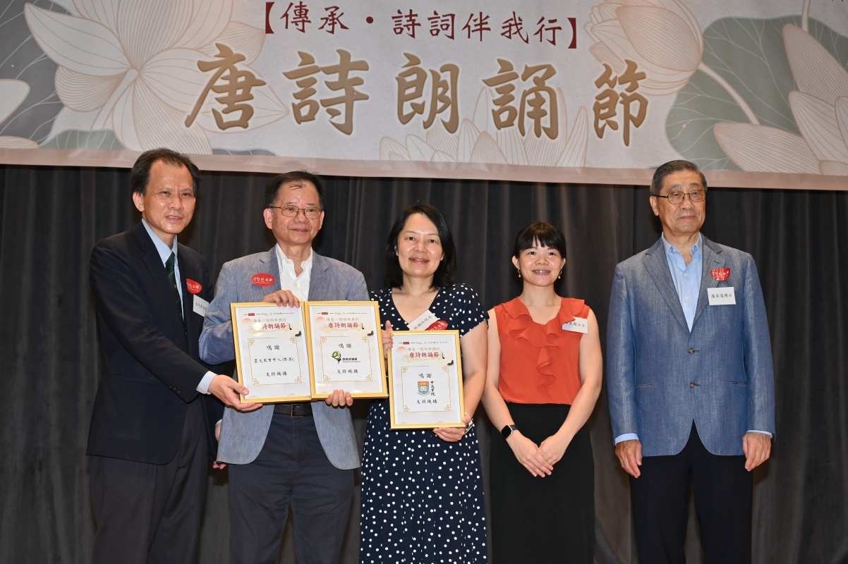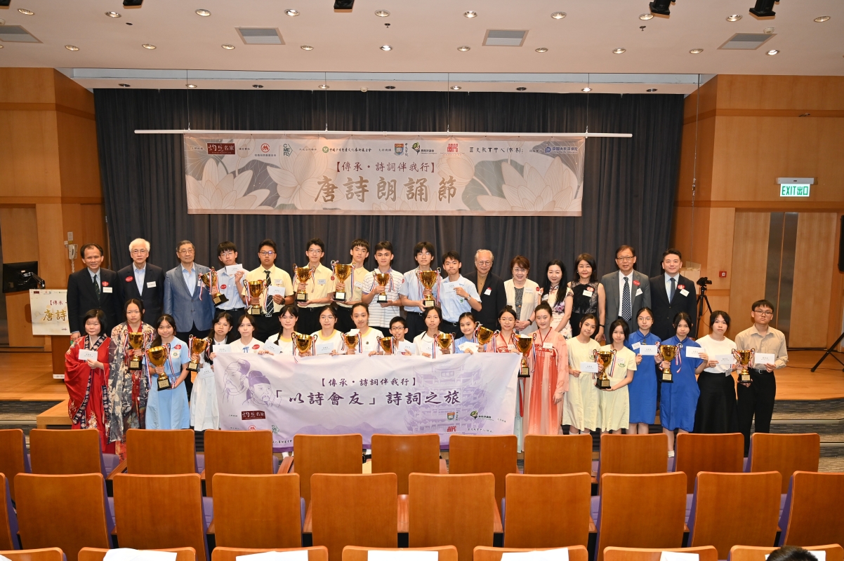 何文匯博士指出,不論同學得到哪個獎均是贏家,因為朗誦比賽是一個很好的學習機會。 他續指,詩詞講求平仄格律、講求押韻,只要念出來有足夠的抑揚頓挫,讓聽眾聽到感到舒服、愉快,朗誦出來的便是藝術品。 太空傳播優秀作品 勝出者將參與詩詞之旅 朗誦比賽設有優異獎及卓越獎,進入總決賽的50位同學獲得由中國航天科技發出的證書及卓越獎,而他們的作品將轉交中國航天科技發送到外太空。 季軍“畫眉盃”得主為普通話單人組的陳昊同學、易家吟同學;普通話雙人組的馬文詩同學、王梓晴同學;粵語單人組的陳宣錡同學、陳盈昕同學;粵語雙人組的鄒靖愉同學、林兆樟同學。 亞軍“夜鶯盃”得主為普通話單人組的馬梓鈞同學、郝徽鵬同學;普通話雙人組的李東芳同學、劉婧熹同學、練方婷同學、郭欽瑩同學;粵語單人組的黃寶輝同學、鄧曉恩同學;粵語雙人組的吳諾菲同學、鄧衣紋同學、馬鳴薇同學、陳泳琳同學。 冠軍“雲雀盃”得主為普通話單人組的郭子樂同學;普通話雙人組的朱婧怡同學、歐陽子恩同學;粵語單人組的陳家甜同學;粵語雙人組的王躍均同學、王子濠同學。