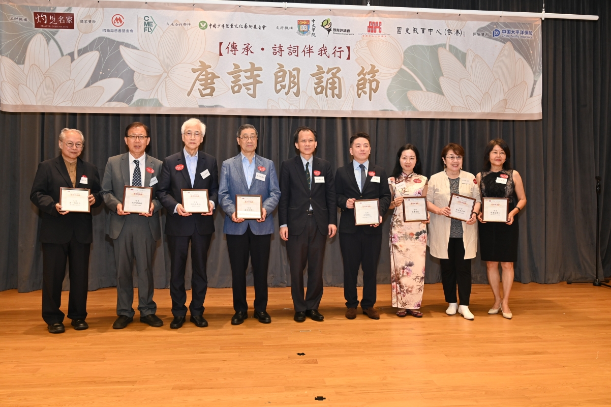 文灼非社長頒發紀念狀予眾多評判。 上述獲獎學生除獲得證書、獎盃及書券外,還會獲得全額資助參加“以詩會友”詩詞之旅。 【編輯:李冉】