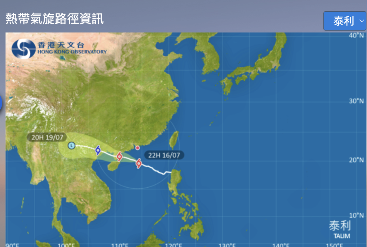 颱風泰利|香港天文台最早17日零時四十分掛八號分享到: