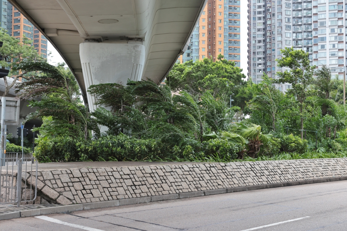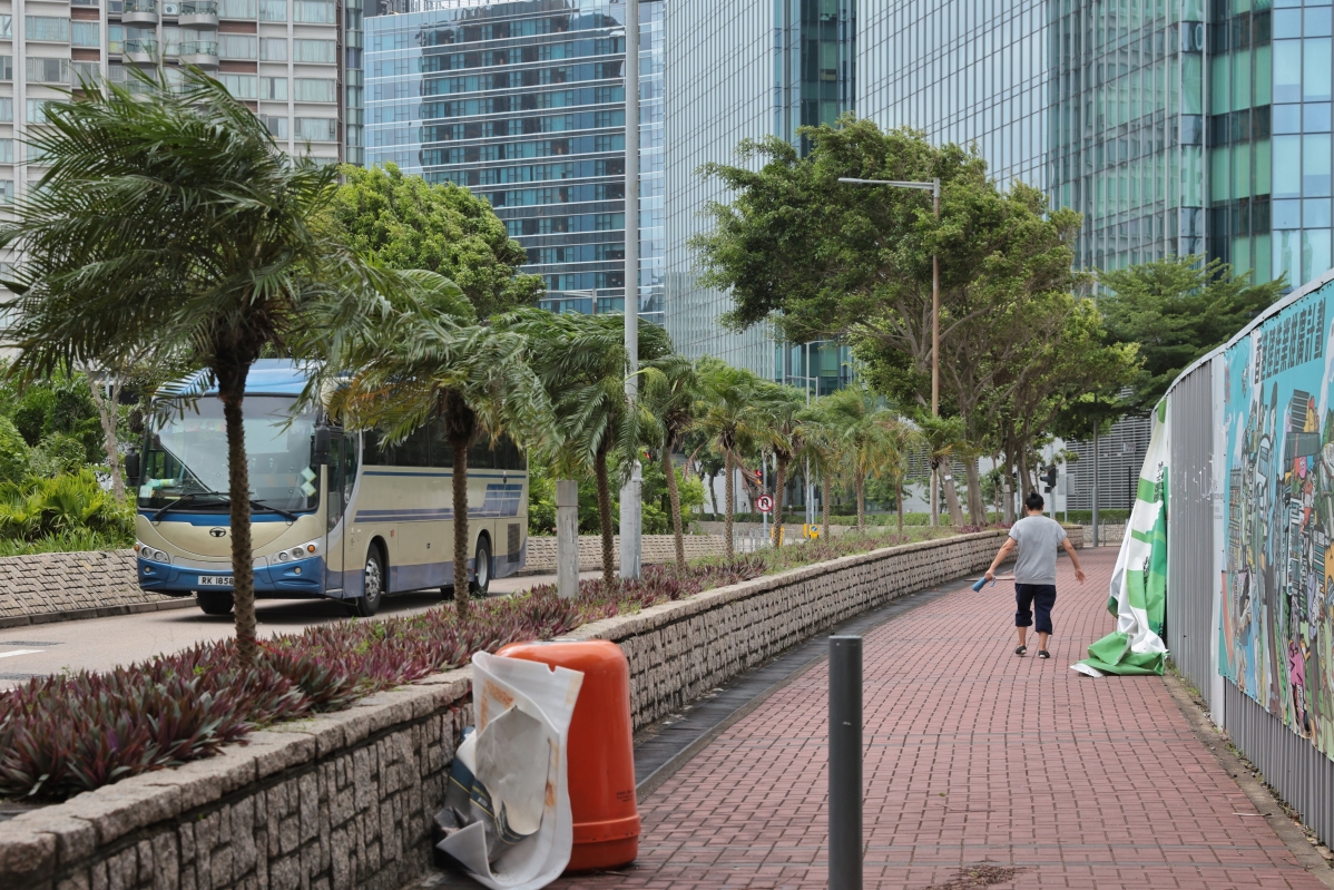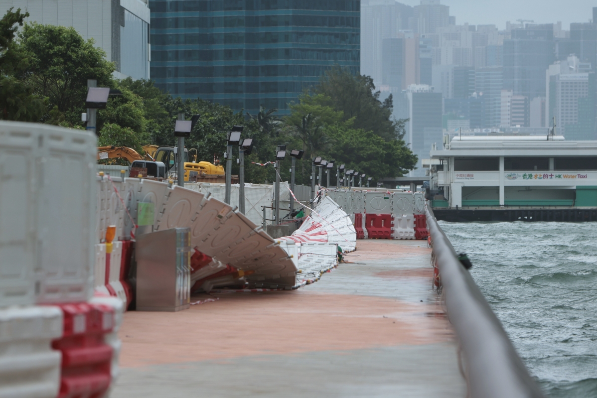 圖為維港海傍有大片圍擋被強風吹倒。 【編輯:謝光磊】