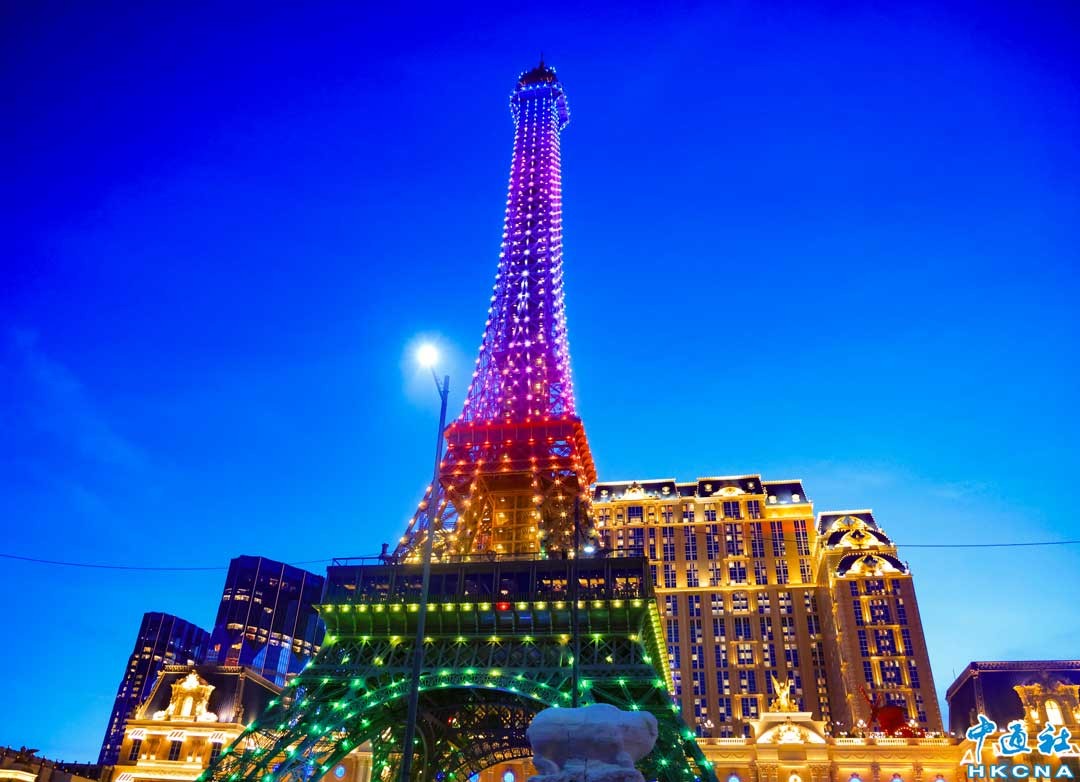 澳門今年上半年入境旅客達1160萬人次。 7月首周,酒店入住率已近九成。疫後澳門正開拓更多消閒旅客市場,摘掉“賭城”標籤,打造世界旅遊休閒中心。圖為巴黎鐵塔。 (香港中通社記者 曹文毓攝)