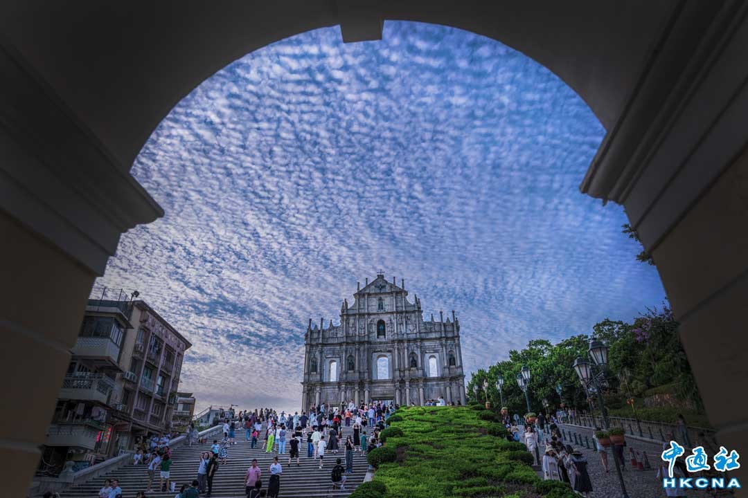 7月14日,天氣酷熱,黃昏時分,澳門上空出現大片魚鱗雲。香港中通社圖片