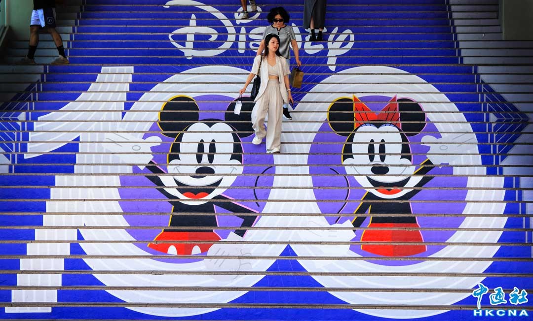 7月14日,香港尖沙咀海港城舉行迪士尼100周年活動,14個打卡場景遍佈商場,同時設置攤位遊戲讓市民收集獨家紀念印章換領獎品,還有“迪士尼100周年期間限定店”讓迪士尼粉絲購買限定商品。(香港中通社記者 許其皓攝)