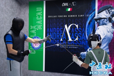 7月13日,奧運花劍冠軍Andrea Cassara(右)在“奧運冠軍花劍交流營”上指導劍手。澳門超酷劍擊會於7月12日至14日舉辦為期三天的“奧運冠軍花劍交流營”,特別邀請了意大利奧運花劍冠軍Andrea Cassara到澳門交流。主辦方冀透過活動為本澳少兒劍擊搭建一個與國際交流的平台,增加劍手之間的技術交流,培養更多有潛力的劍擊選手。 香港中通社圖片