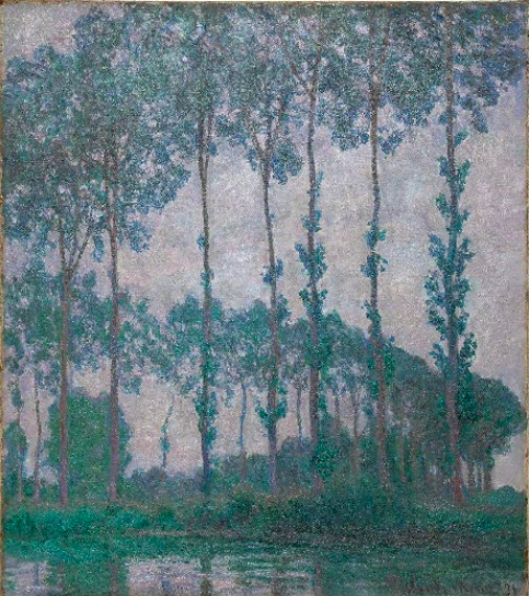 這幅作品是克勞德·莫奈(Claude Monet)於1891年繪製的埃普特河岸邊24幅楊樹畫作中的一幅。1891年夏秋季,莫奈在吉維尼(Giverny)沿埃普特河(Epte River)創作了一系列楊樹畫作,在不同的光照和天氣下探索了一組構圖有限的挑戰。當吉維尼河對岸的Limetz村決定在拍賣會上出售這些樹木時,莫奈為了完成畫作,付錢給當地的木材商人,以確保樹木在他畫作完成前仍屹立不倒。像莫奈的麥垛系列一樣,這批楊樹畫作最初作為同一個主題展出。1892年在巴黎展出了該系列其中的15幅。
