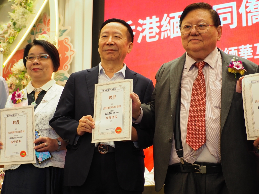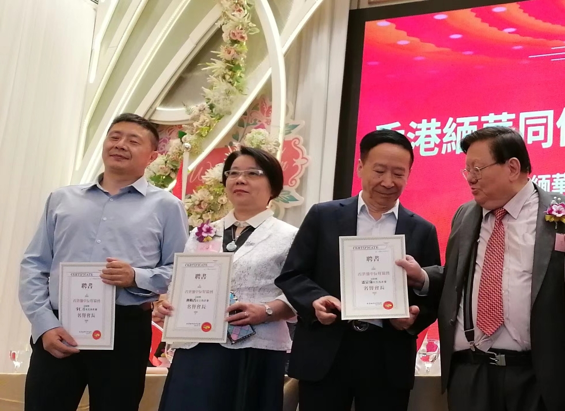 香港緬華互助會、香港緬中友好協會主席王錦彪頒發名譽會長給與林梅香女士等