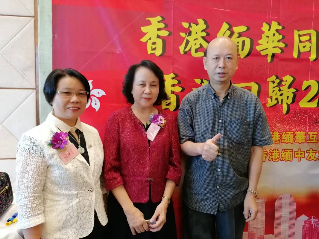 香港緬華互助會、香港緬中友好協會會長徐新英(中)、名譽會長林梅香(左)、嘉賓郭天文出席