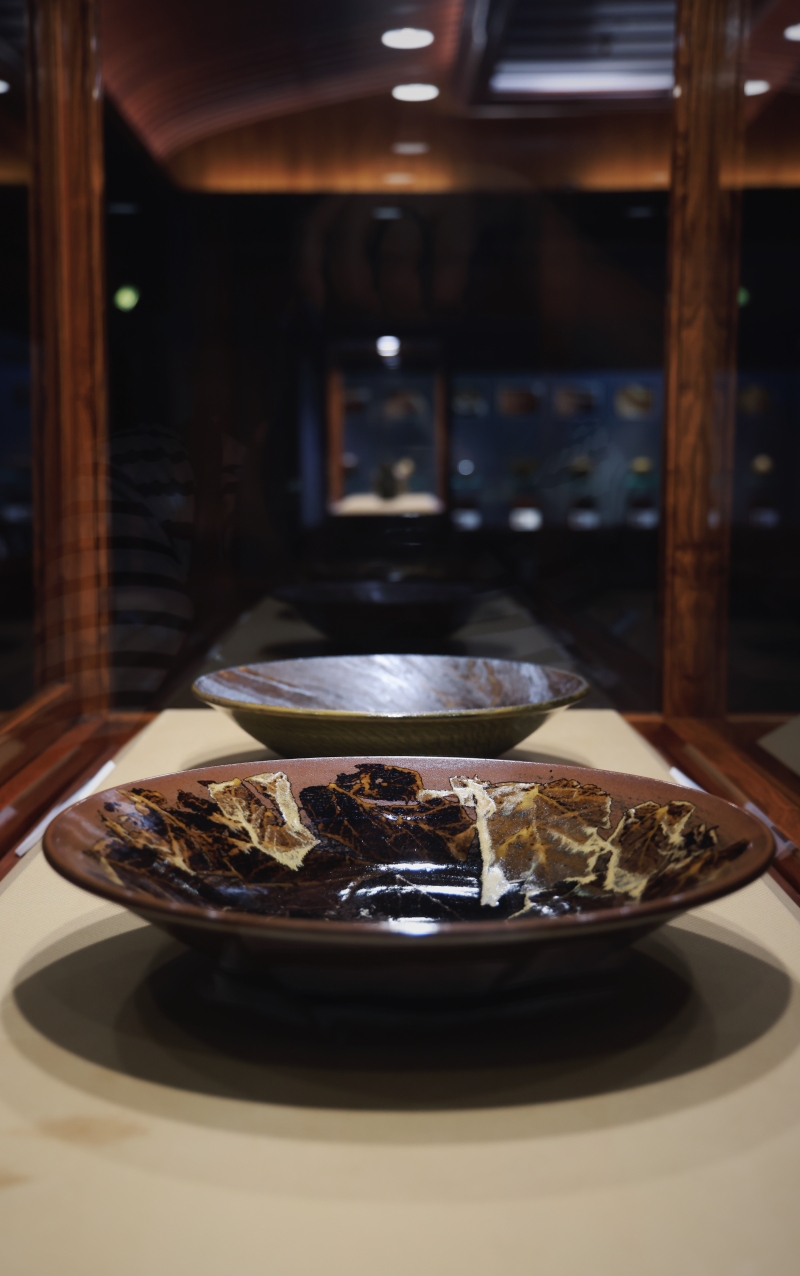 高峰對弟子的每一件作品都如數家珍 以有情之眼尋靈感,以對歷史的感悟制陶,最終作品呈獻出高峰的人生態度,“彩雲天”、“風雲頌”、“茶山窑之星”......,高峰的作品“名副其實”,夜空中的閃耀星光、千秋日月的笑顔、黃昏的雲星霞蔚都在陶瓷中即觸手可得。在他看來,萬物都是靈感,一件物品在他的眼中可呈現出多種不同的角度,他以此享受生活,忠於陶藝。 展廳中的作品,皆是運斤成風,很難想象半數以上作品為兩位年輕女性——高峰的弟子鮑祈茗、侯夢露所制。 “淬煉的五年”——鮑祈茗如此形容她學為陶工的日子。對於選擇做陶瓷的原因,鮑祈茗只用了簡單的五個字回答,“因為我喜歡。” 2014年鮑祈茗大學畢業後,她來到茶山窯,從清掃,以及淘洗泥料和釉料開始學起。對鮑祈茗來說,打掃衛生也是打掃自己的心,心無雜念則做出乾淨的器物,茶山窯中的雲霞、日落、秋林,看在眼裡,嵌進瓷中。