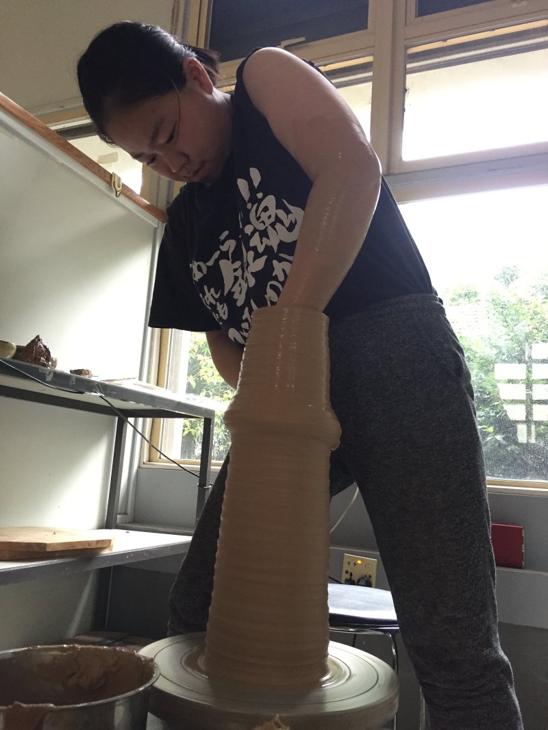 鮑祈茗(受訪者供圖) 而對於侯夢露來說,成為陶工,曾“是一個從沒有過的念頭”。侯夢露在機緣巧合中進入景德鎮瓷器學院就讀,後來到茶山窯學習,開始了陶工之夢的萌芽。燒窯的時間從最初的39小時,逐漸到50、60個小時,到最後的81小時,侯夢露也曾有過“腳踩棉花、如立雲中”的感覺,但五年間,她見過“台風天的雲”、“暖春”、“葉影”、“暗湧”,也身處森林,願以黃土塑夢。