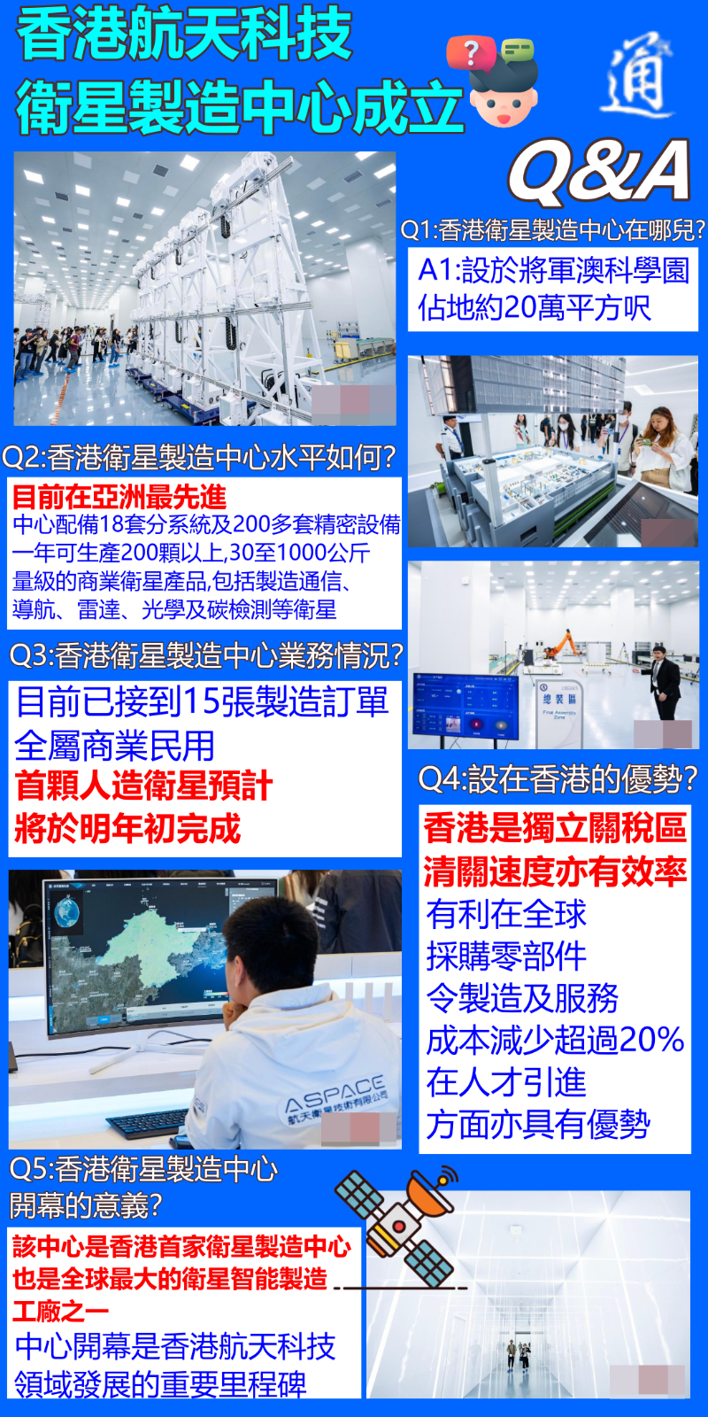香港新聞網7月26日電 香港航天科技集團旗下的ASPACE香港衛星製造中心昨天(7月25日)正式開幕。中心設於將軍澳科學園,由科大前校長史維出任首席戰略官及首席科學家。開幕之初ASPACE就已收到了15張訂單,均為商業民用用途。香港航天科技聯席主席及行政總裁文壹川表示該中心目前為亞洲最先進的智能衛星製造中心。戳圖看↓↓↓關於ASPACE的一些資訊,了解ASPACE有多牛!