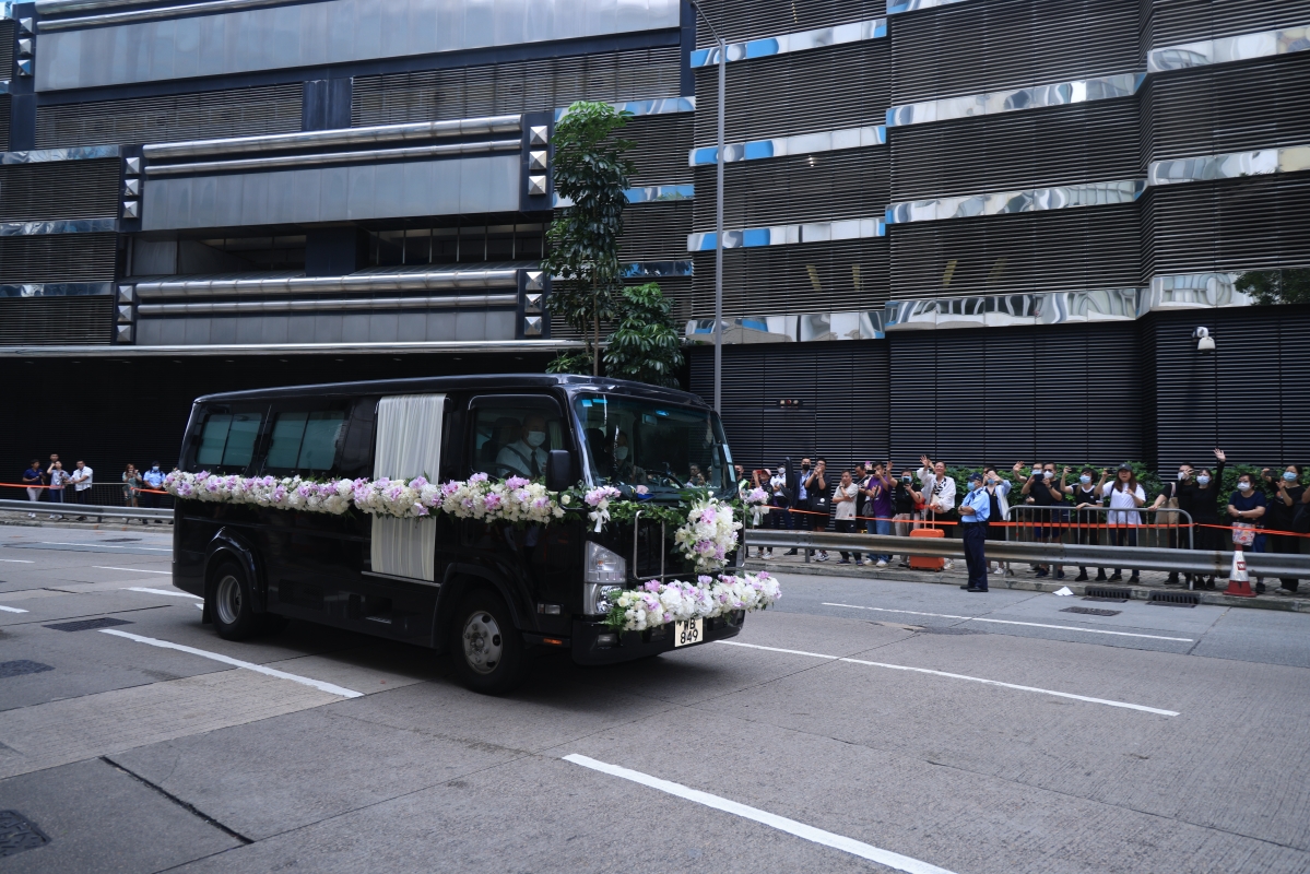 運載李玟靈柩的靈車緩緩駛出殯儀館 【編輯:許其皓】