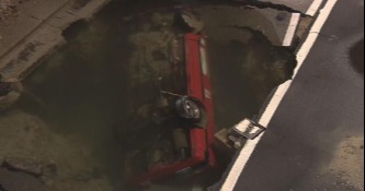 香港黃竹坑道食水管爆裂引致路陷(5-5)