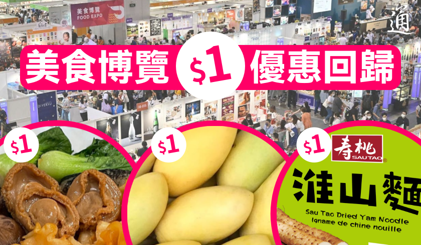 美食博覽1元優惠回歸!(香港新聞網製圖) 對一眾入場的巿民來說,參展商提供的優惠產品最為吸引,今年繼續有大量只售1元的產品,包括1元罐頭鮑魚、1元佛跳牆、1元東北米、1元淮山麵、1元安格斯牛肉薄切、1元沖泡茶機等,最便宜是只售1角的雞煲。一起來看看吧!(圖片:香港新聞網)