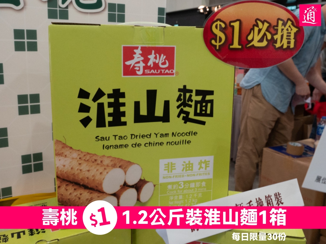 壽桃1.2公斤裝淮山麵以1元發售,每日限量30份。