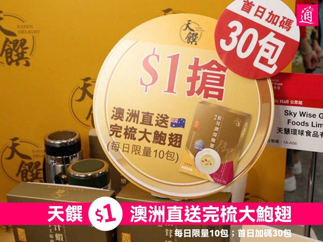 澳洲直送完梳大鮑翅1元一包,每日限量10包。